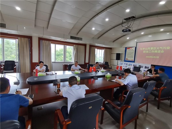 6月2日,九华山风景区党工委委员、管委会副主任、政法委书记李刚主持召开风景区大气污染防治工作推进会,管委会有关部门及乡镇负责人参加会议。